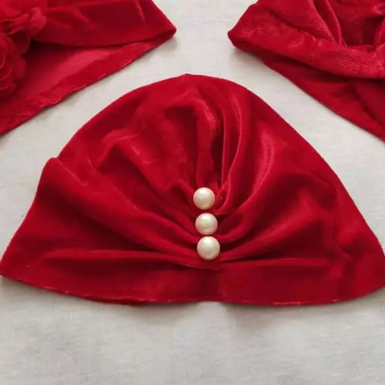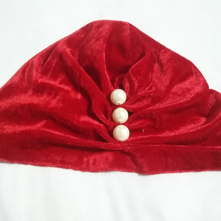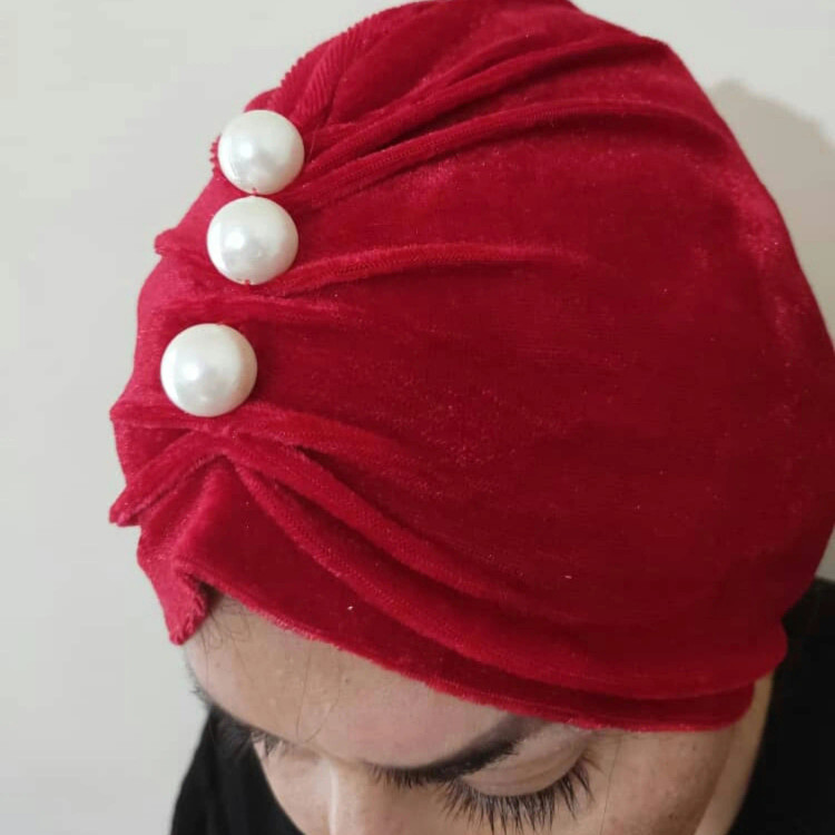 توربان مخمل کشی رنگ قرمز مروارید دوزی فری سایز اندازه استاندارد