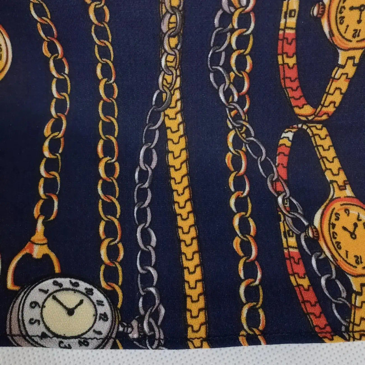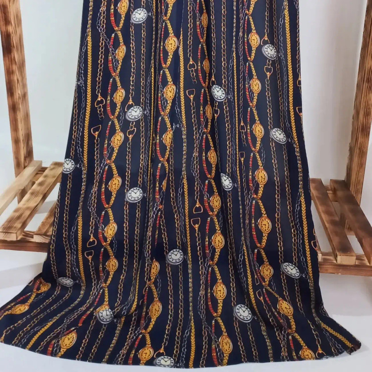 شال کرپ حریر طرحدار طرح زنجیر و ساعت ایستایی متوسط برند لاجورد