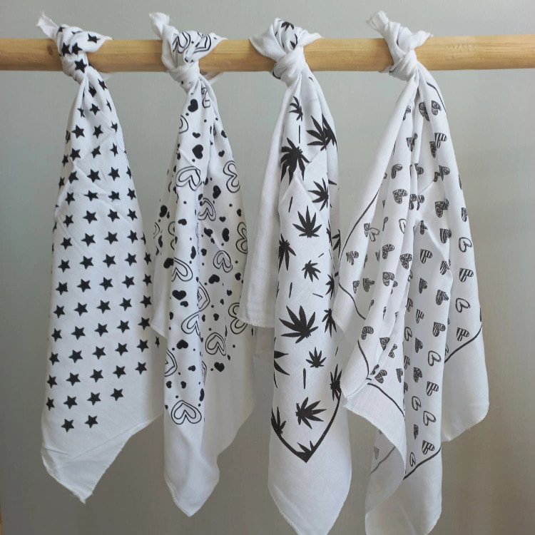 دستمال سر یا باندانا نخی رنگ سفید در ۱۴ طرح زیبا، مناسب ورزش پیاده روی، دور همی،سفر