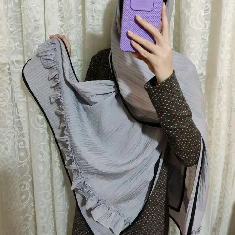 شال دلتا.مزونی.چین دار و نوار دوزی شده قواره 2*75.کیفیت عالی بدون پرز شدن