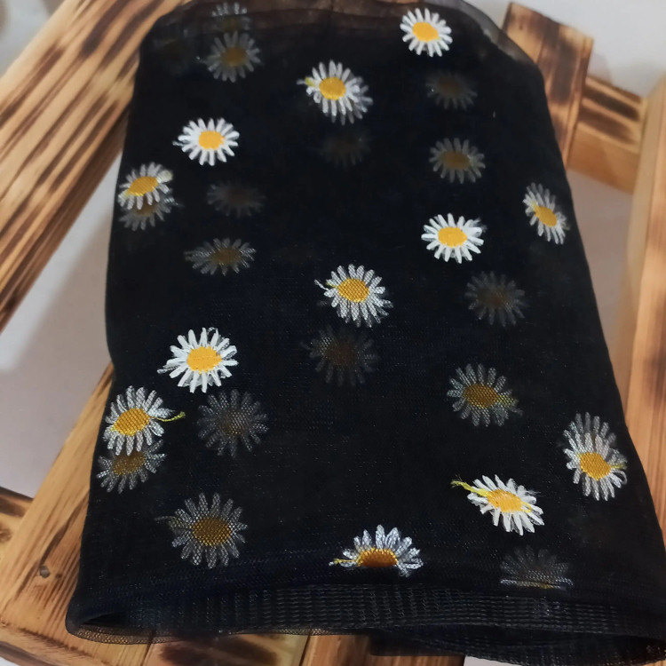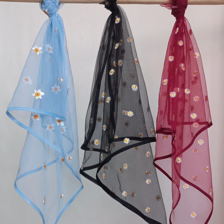 روسری های قواره کوچک تور بابونه دور دوزی شده با نوار.مناسب مهمانی .دستمال سر .توجه کنید ابعاد مینی اسکارف رنگ مشکی ۶۵ در ۶۵ هست