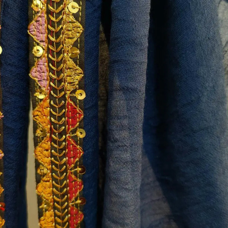 شال نخی مزونی نوار گلدوزی