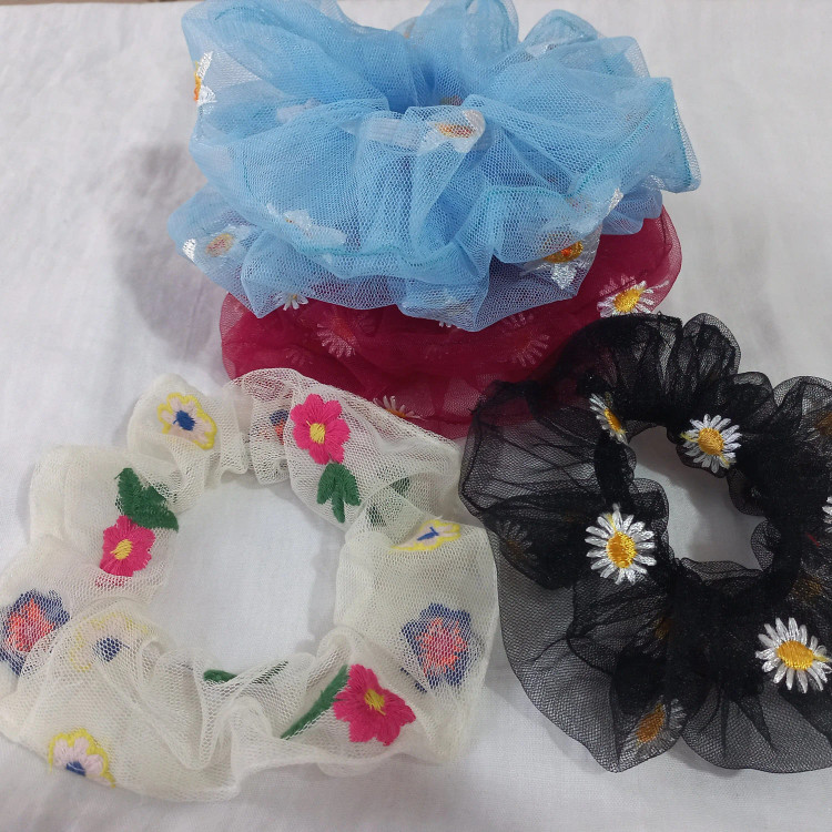 کش موهای بابونه در سه رنگ زرشکی و ابی و مشکی با اندازه دلخواه شما دوخته میشود