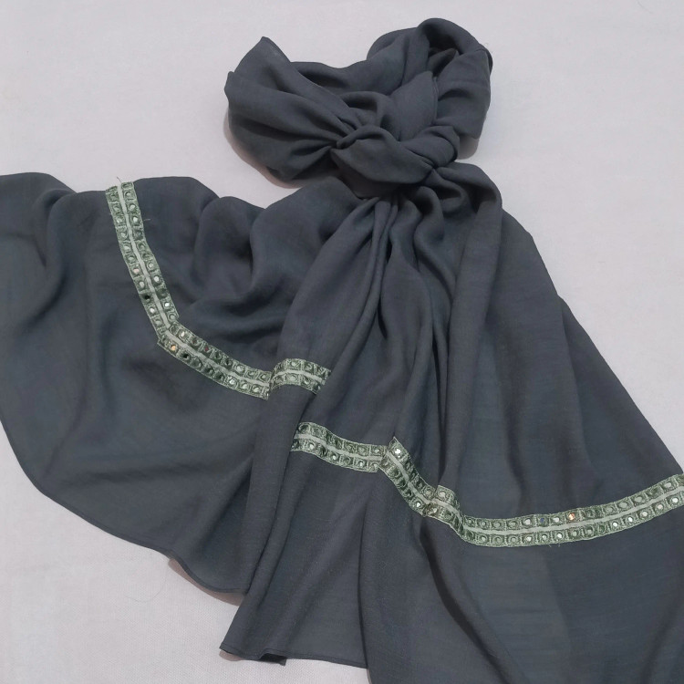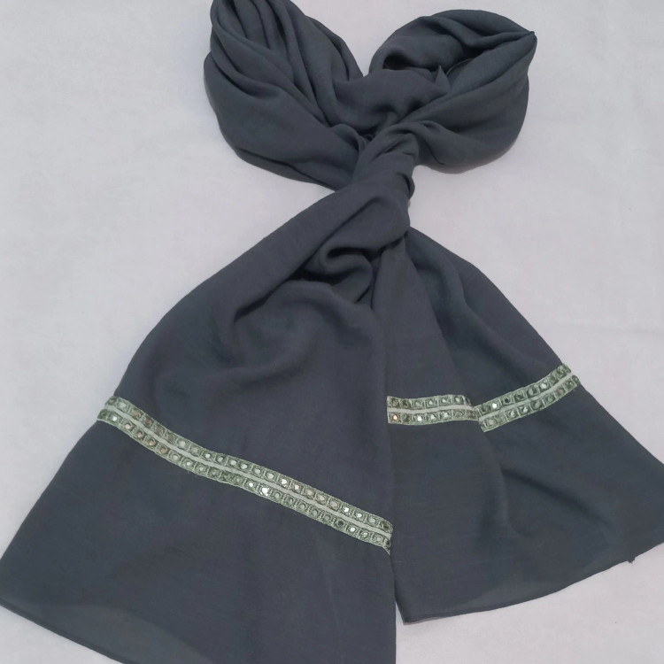 شال مزونی ،رنگ فیلی ،تزیین شده با نوار آینه دوزی ،برند لاجورد