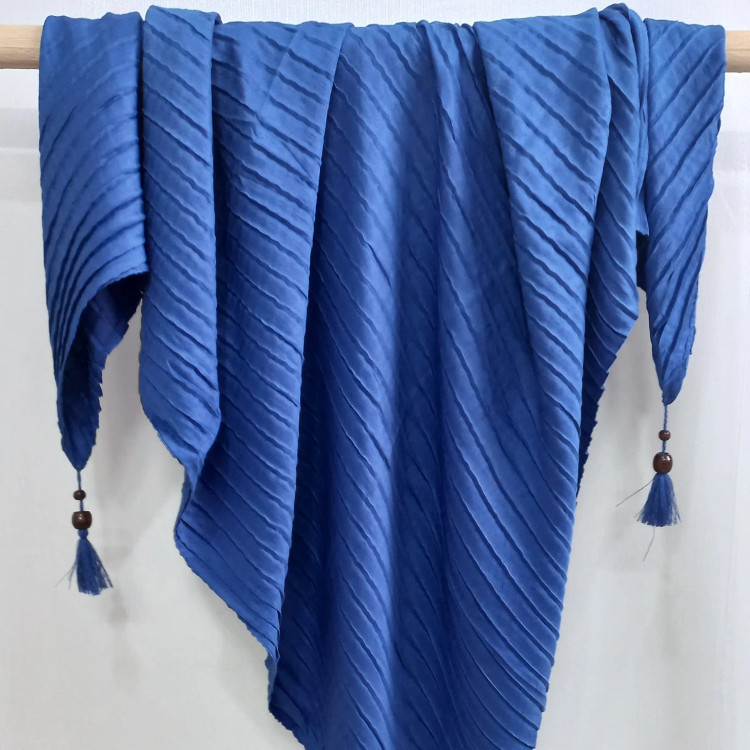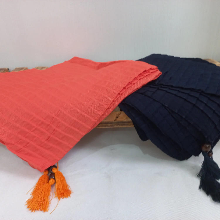 روسری های نخی پلیسه مربعی وارداتی بسیار سبک و نرم ایستایی عالی روی سر دارن قواره بزرگ منگوله چوبی فقط دو رنگ نارنجی و ابی باقی مونده