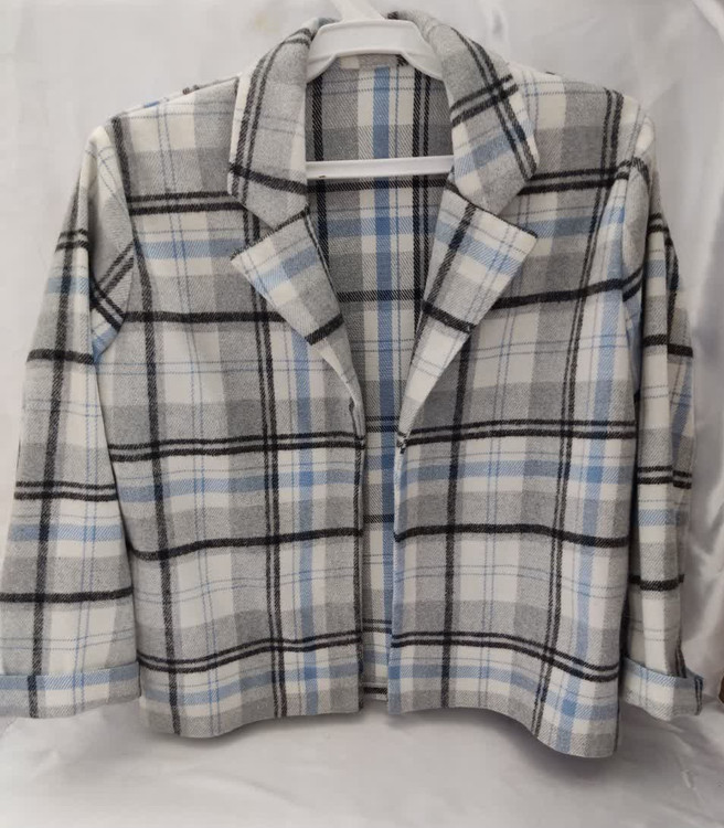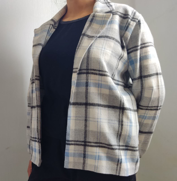 کت کراپ موهر پشمی چهار خانه.بسیار لطیف.قد 60 سانت آستین بلند یقه انگلیسی
