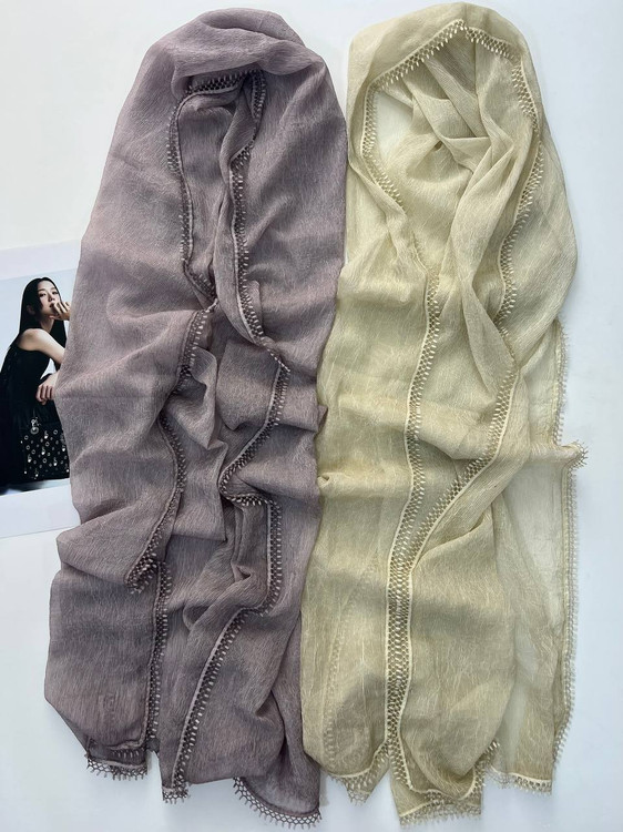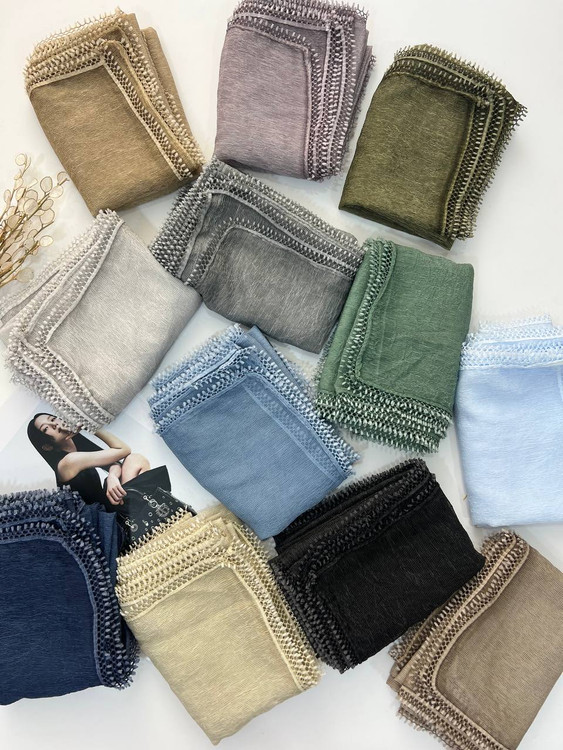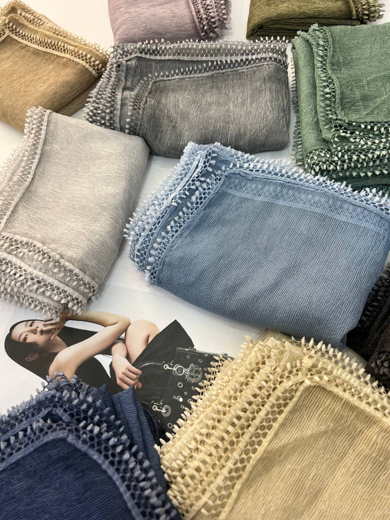 شال وارداتی،کبریتی ریز.دور دانتل .کار بسیار ترند و شیک .سبک و لطیف