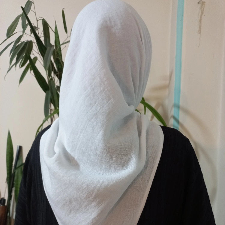 روسری سفید نخی قواره 110 بسیار نرم و لطیف و سبک ایستایی عالی