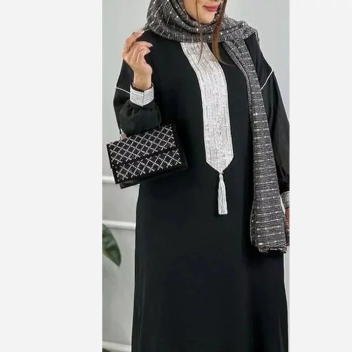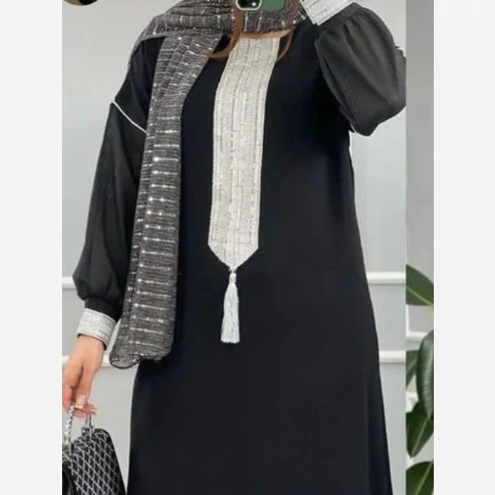کفتان مشکی جنس شانتون ترکیب با پارچه سنتی فری سایز تا سایز 46