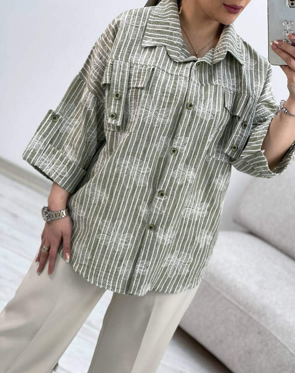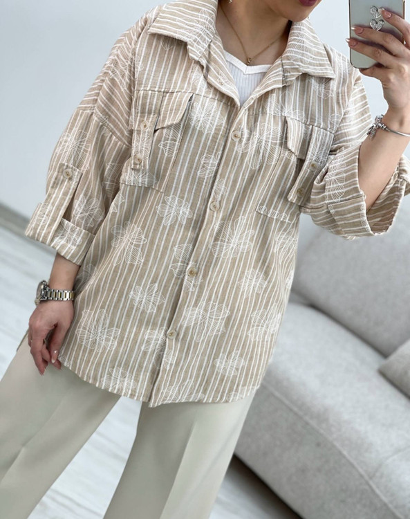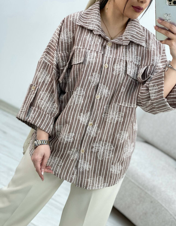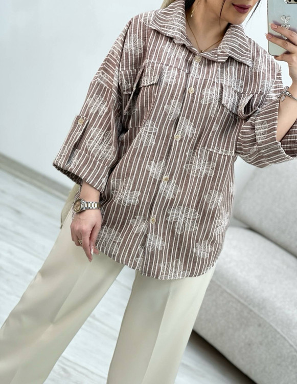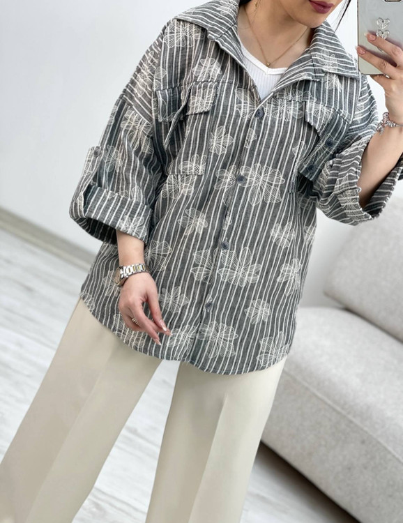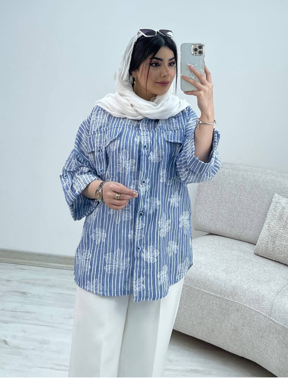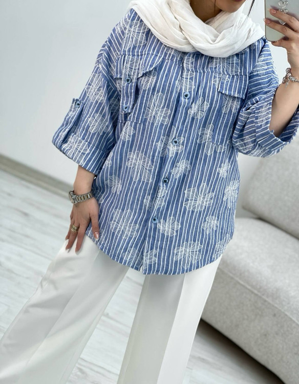 شومیز لینن زارا .مدل باکسی .نرم و لطیف .طرحدار گل برجسته