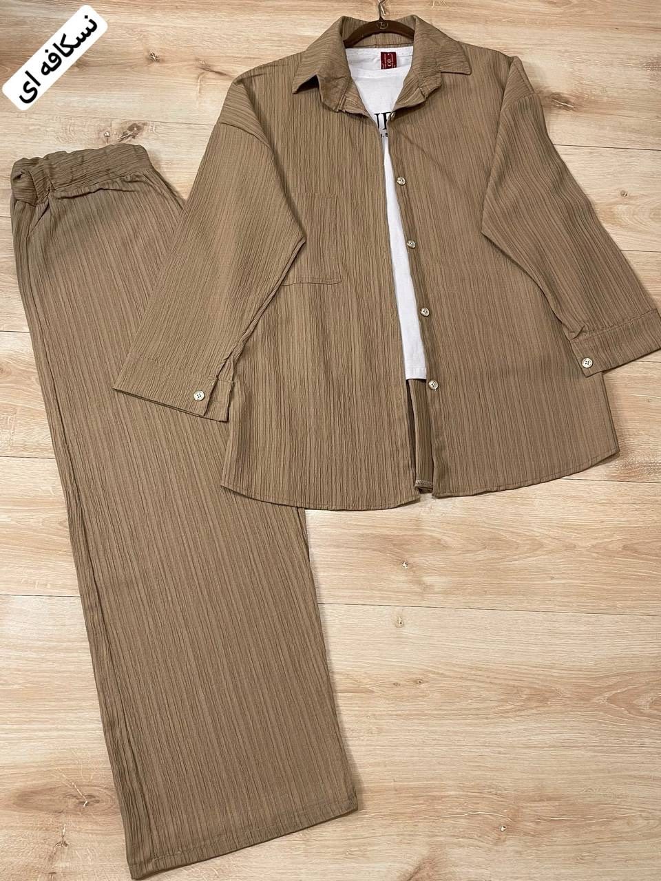 ست شومیز شلوار سوپر کراش .درجه یک.فری سایز مناسب تا سایز ۴۴ دور سینه ۱۰۰ سانت قد جلو شومیز ۷۳ قد شلوار ۱۰۰ سانت شلوار کشی